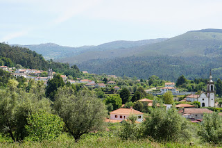 Another hour's slog finds us in front of pilgrims lounging on chairs outside a lone café perched on the side of a hill at the entrance to a small village. The outside chairs benefit from